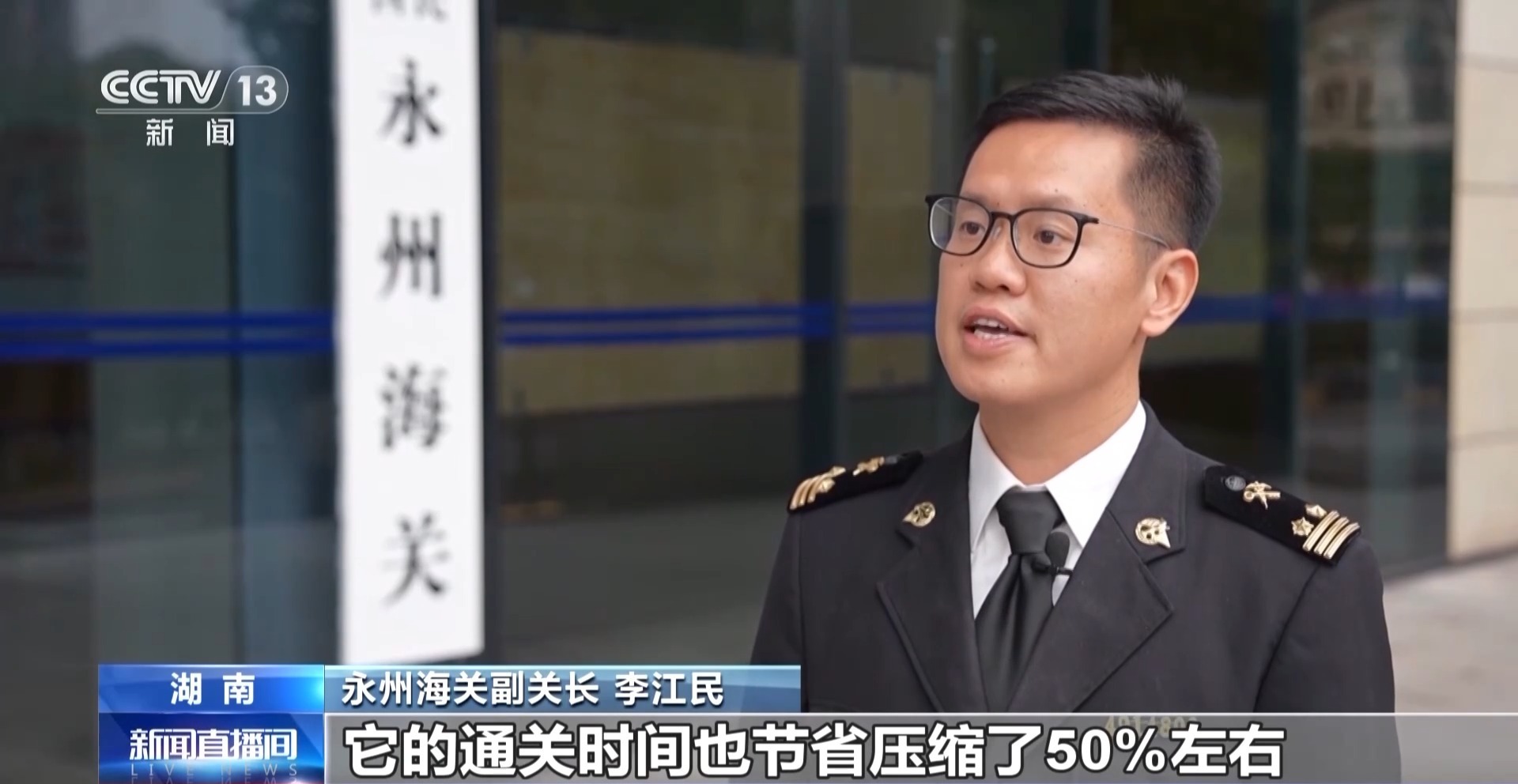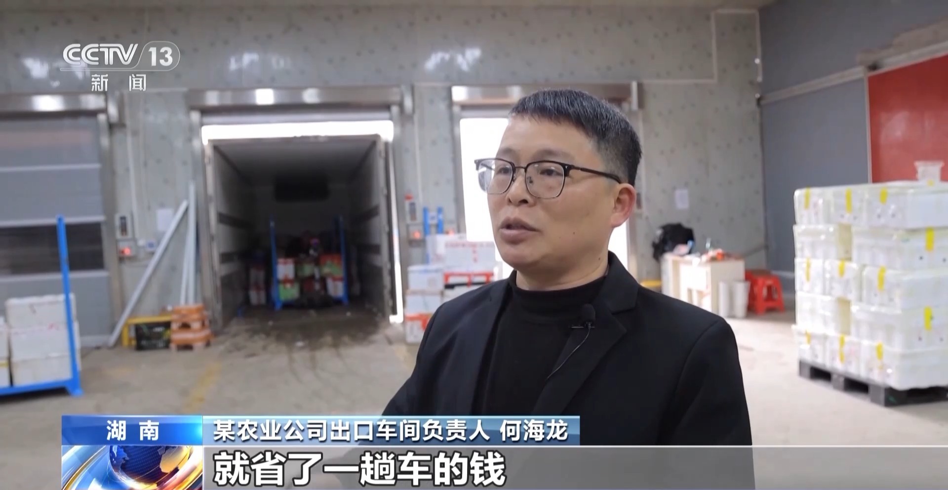 永州海关副关长 李江民:采取“果蔬拼装”的监管模式以后,企业的每一车运输成本可以节省1000元左右,它的通关时间也节省压缩了50%左右。
