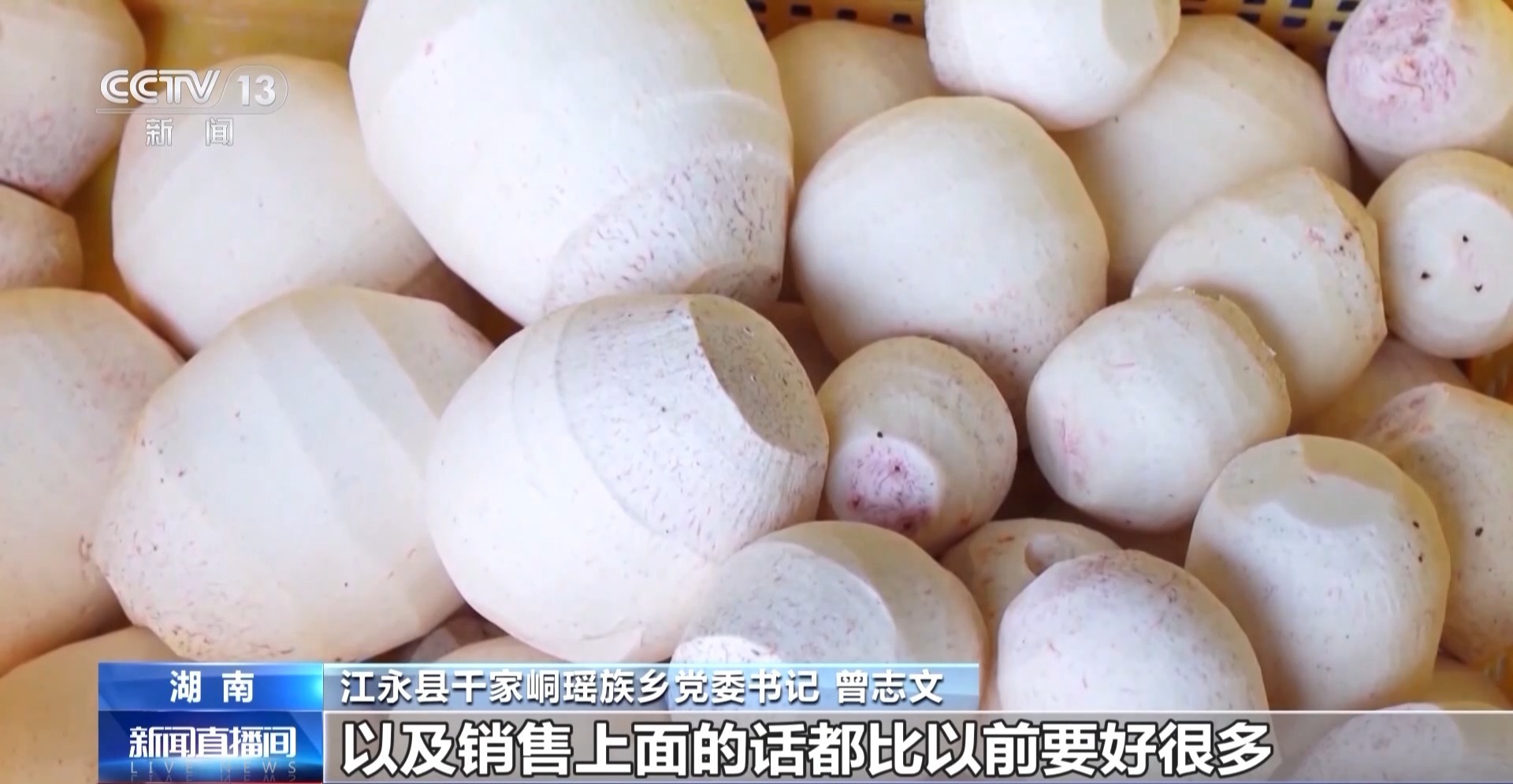 江永县千家峒瑶族乡党委书记 曾志文:这些年轻人返乡之后,他们本身年轻,而且有知识,思维也很活跃。在种植芋头技术上和管理上以及销售上都比以前要好很多,它比以前传统种植要增收2000元一亩,对香芋特色产业有很大的促进作用。